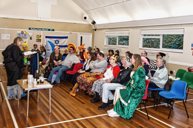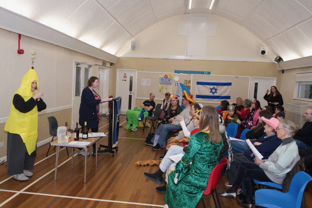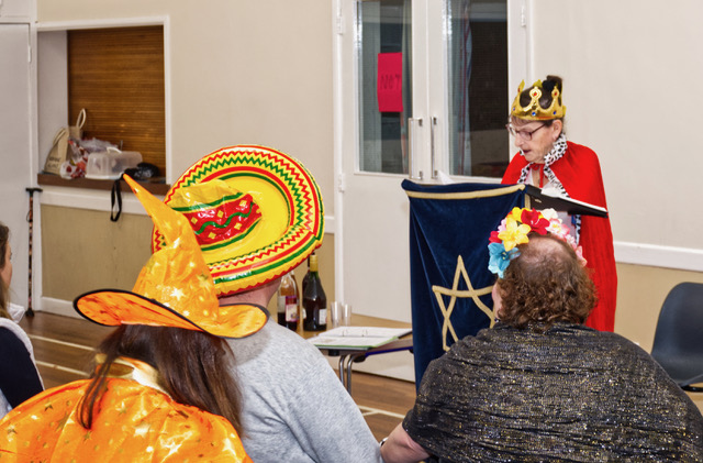 The service was led by lay leader, Anastasia. Reading of the Megillah of Esther was read with Gusto, with several members of the community called upon to read each part. In the age-old tradition, wicked Haman was Booed whilst Mordechai and Esther were cheered. Most adults and children alike dressed up, which made for a wonderful atmosphere. We had all sorts, from Queen Esther to Robbers and dinosaurs.